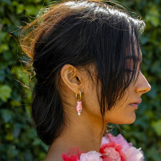 Statement Glass Earrings - Pink